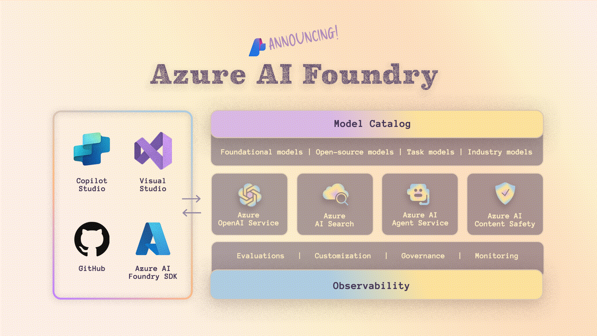 Azure AI Foundry launched key updates, including new AI models, fine-tuning, enhanced interoperability, and multi-agent orchestration that expand developers' ability to design, customize, and manage AI apps and agents.